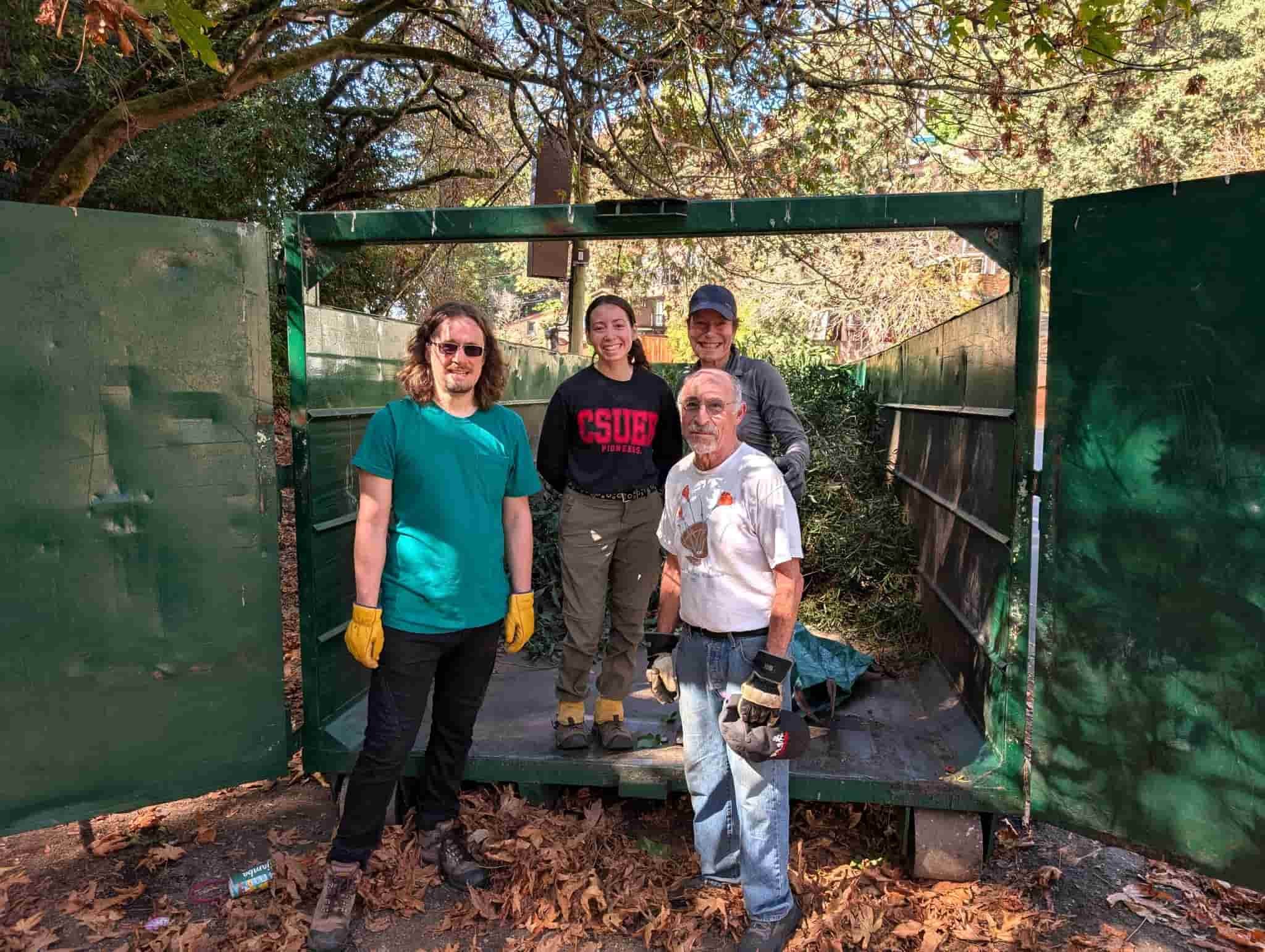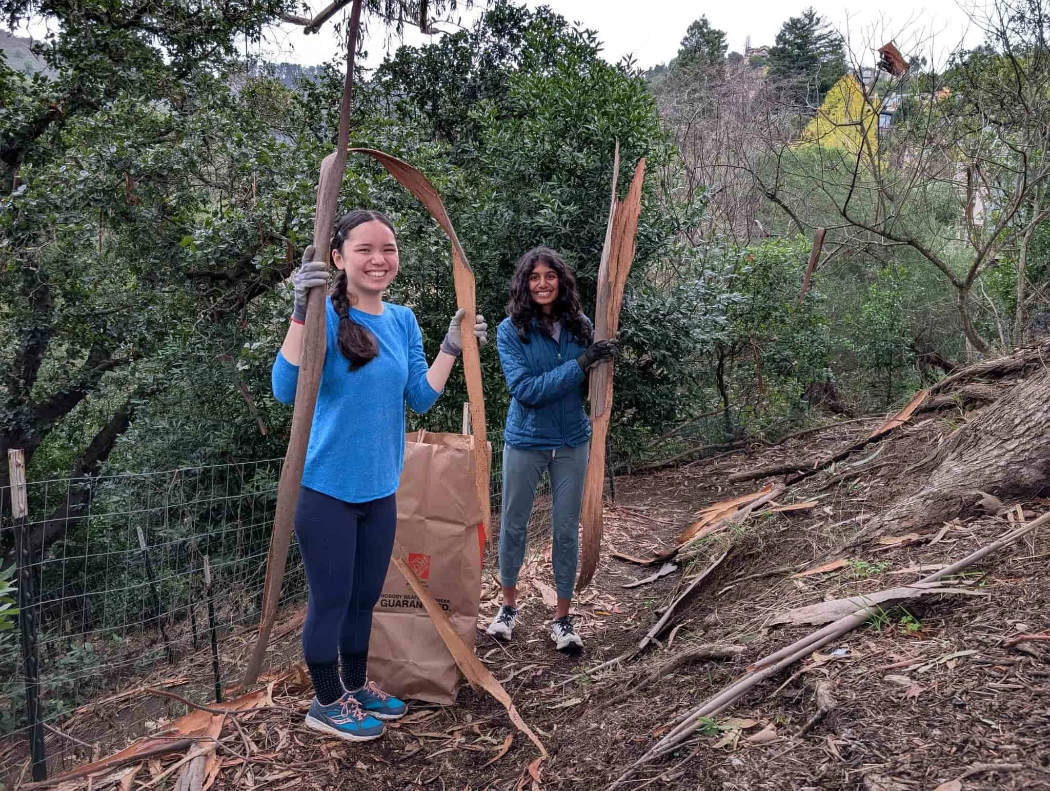 Join the Garber Park Stewards, Conservancy members, and North Hills Community Association as we celebrate Martin Luther King, Jr. Day of Service in Garber Park. We will pull invasive plants and remove eucalyptus debris from the park. This is a habitat restoration event filled with plant ID opportunities and a goal to help make the park more fire safe. Come out and rake the park’s main trails, bag non-native and invasive plants like eucalyptus debris (leaves, larger branches, and bark pieces), and fill a large dumpster provided by the City of Oakland to help lower fire fuels (photo below).